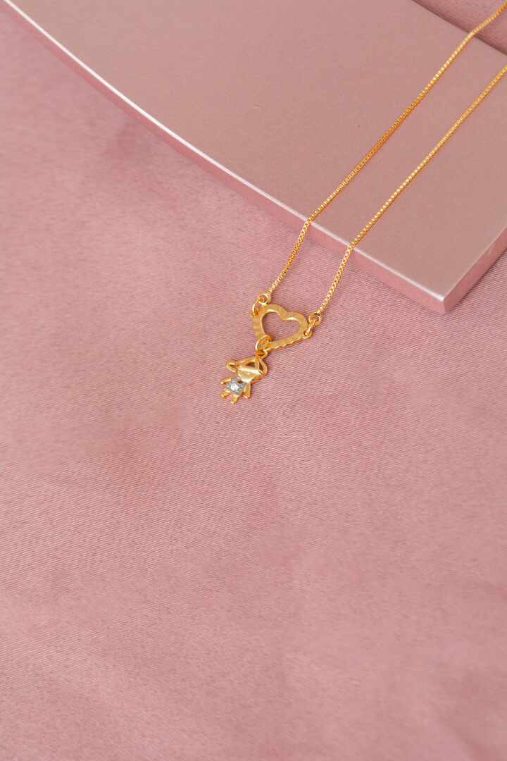 - GARGANTILHA CORAÇÃO LISO COM MENINA CRAVEJADA
